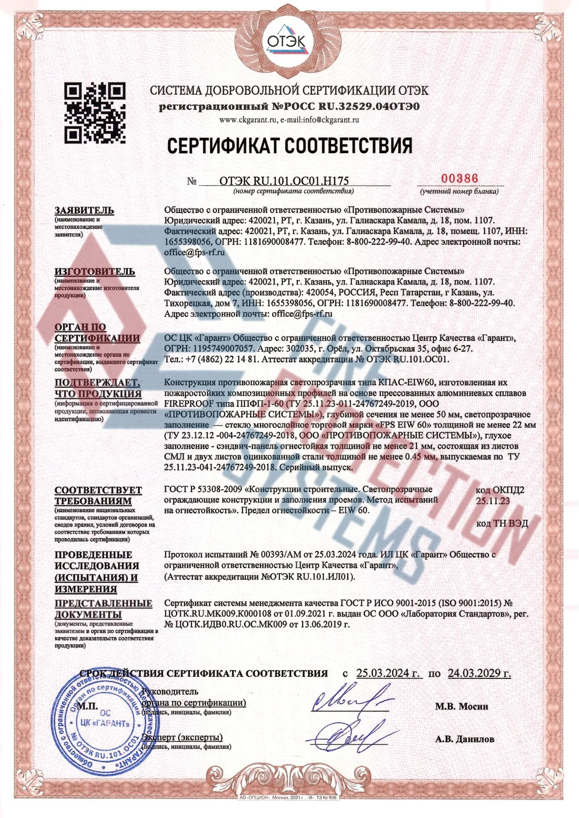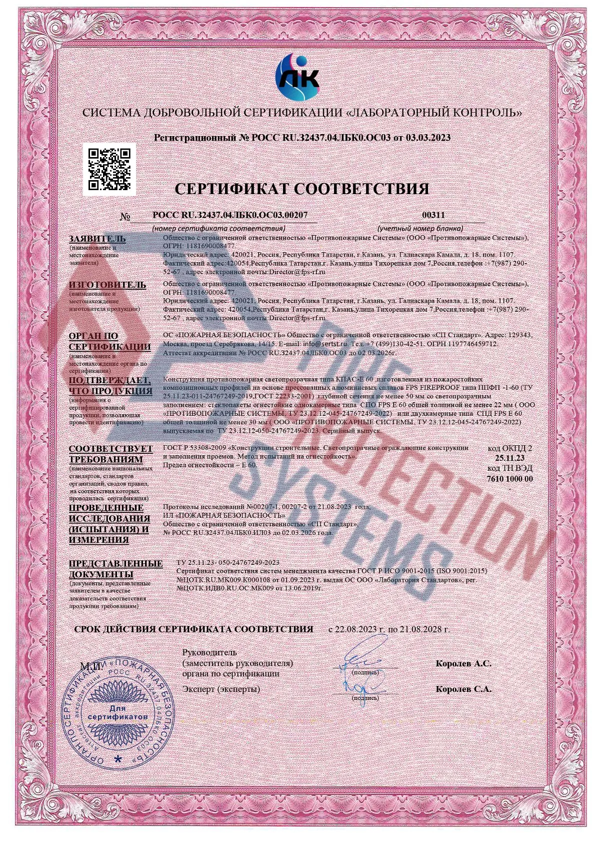 Противопожарные алюминиевые перегородки в Сыктывкаре собственного производства от компании «Fire Protection Systems». Мы изготавливаем любые типы противопожарных перегородок, включая глухие металлические конструкции и светопрозрачные перегородки с алюминиевым профилем. В нашем ассортименте противопожарные перегородки огнестойкостью EIW15-EIW60 с возможностью индивидуального производства под любой проект. Мы учитываем все требования к противопожарным перегородкам, а также предлагаем доставку и монтаж по всей России. Вся продукция сертифицирована.